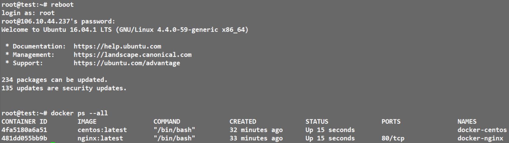 docker 컨테이너의 경우 ctrl+c로 컨테이너를 종료하거나 reboot 를 하게 되면