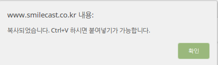 - 주소복사 클릭 후 팝업창에 주소를 ctrl + c 키를 눌러 클립보드에 복사후 ctrl + v 로 붙여넣기 후 사용하면 된다.