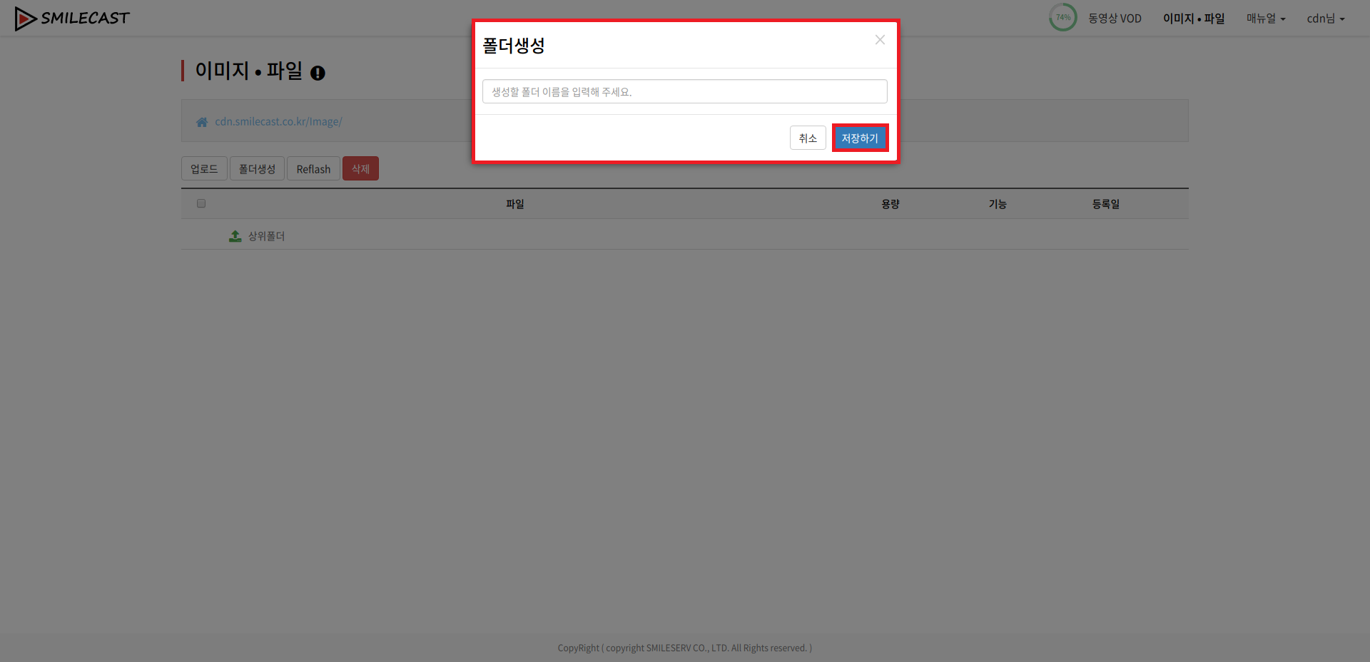 - 원하는 폴더명을 생성한후 저장하여 폴더생성