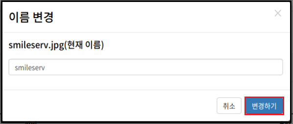 - 이름변경 클릭 후 파일 이름 수정후 저장을 클릭한다.
