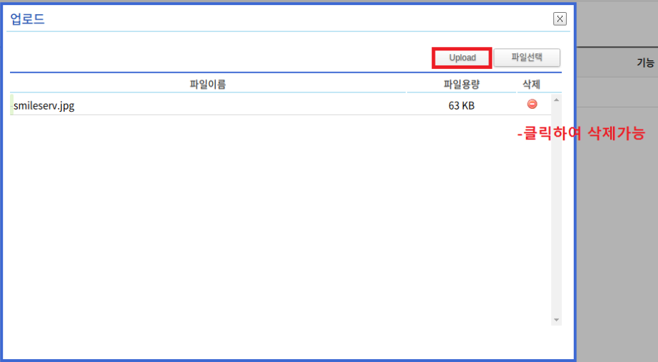 - 파일삭제 클릭하여 업로드된 이미지 파일을 삭제할수 있다.