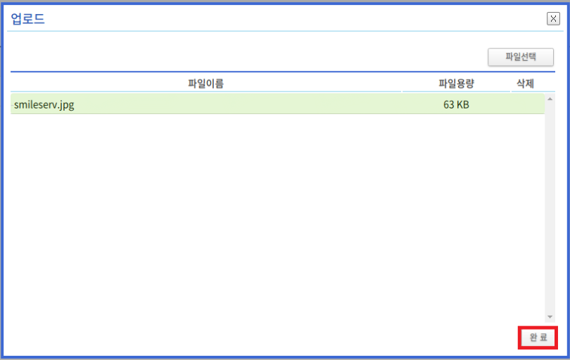 - 완료 버튼을 클릭하여 최종적으로 업로드 할수 있다.