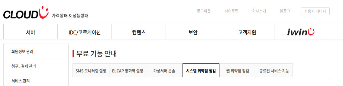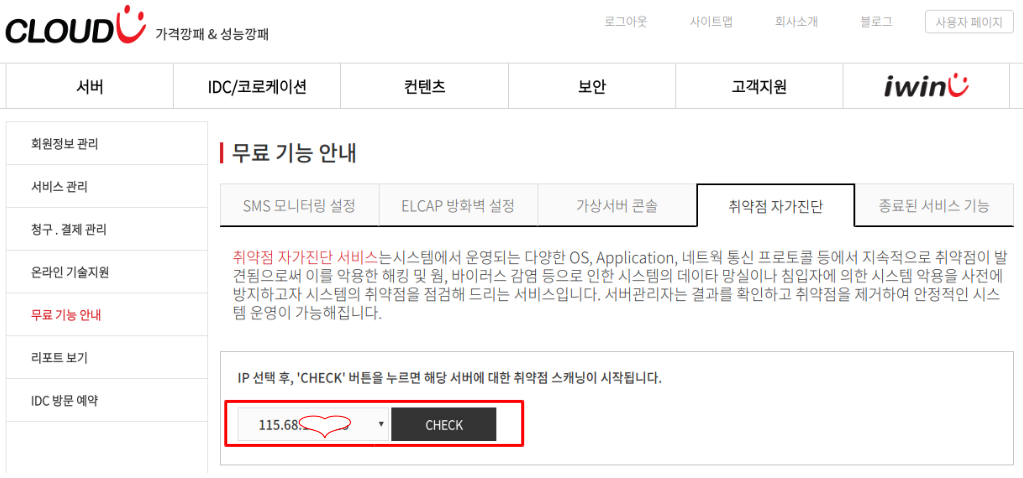 Cloudv 홈페이지에 접근하면 서버의 보안 취약점을 무료로 직접 체크하는 기능을 확인할 수 있습니다.