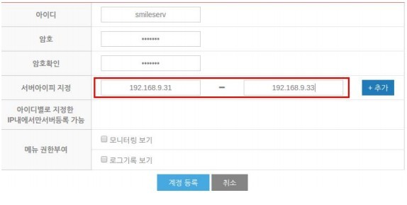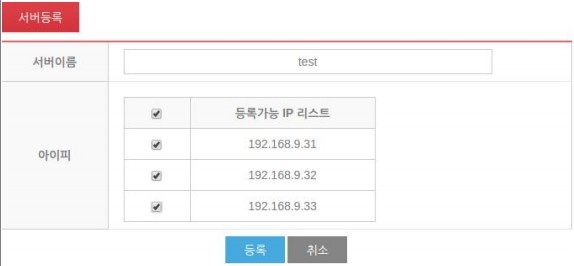 서버 등록 버튼을 클릭 후 서버 이름과 등록할 IP를 선택 후 등록합니다.