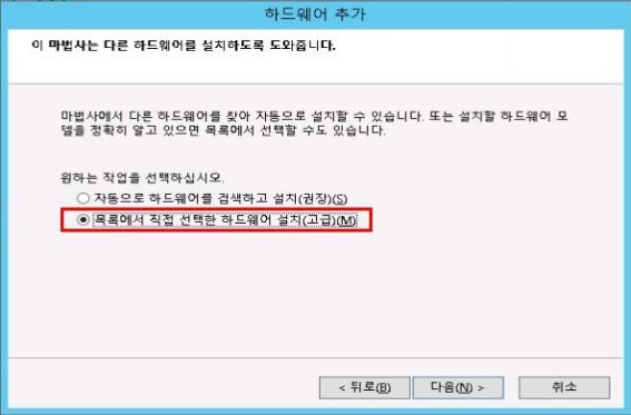 다음 항목에서 '목록에서 직접 선택한 하드웨어 설치(고급)(M)'을 선택합니다.
