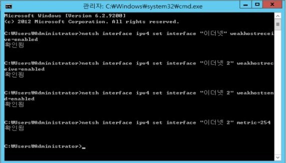 netsh interface ipv4 set interface "이더넷" weakhostreceive=enabled
