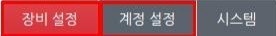 설정에는 장비설정, 계정설정, 시스템이 있습니다.