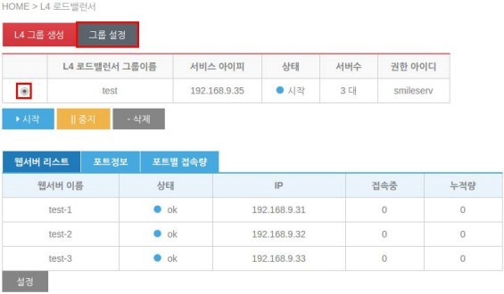 서버 등록 완료 후 L4 로드밸런서로 이동해서 L4 그룹을 생성합니다.