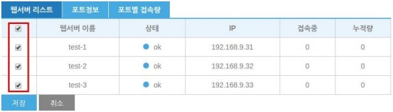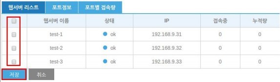 왼쪽 체크박스에서 제거할 웹서버를 체크 후 저장합니다.