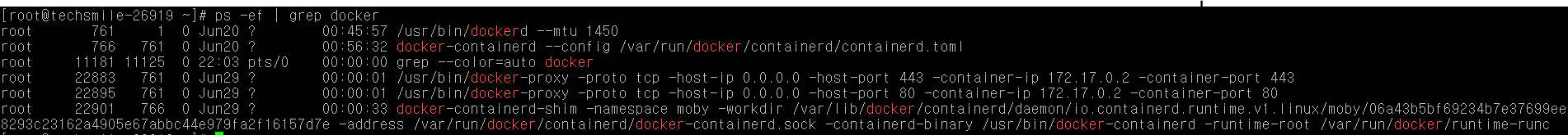 도커 데몬의 실행 상태는 'ps' 명령을 통해 확인할 수 있습니다.