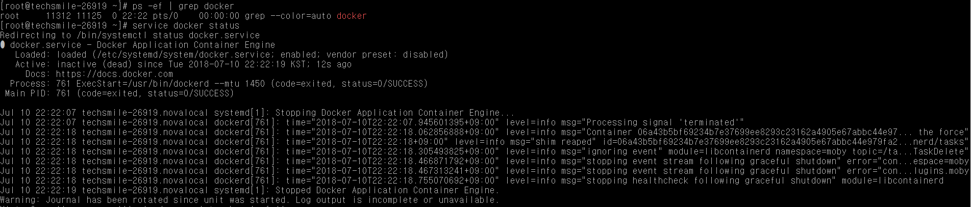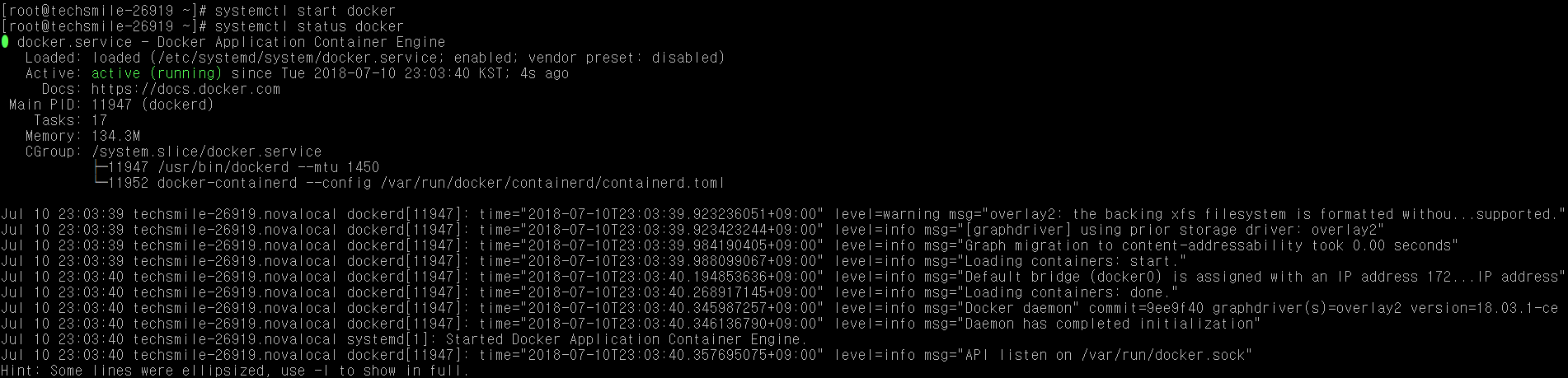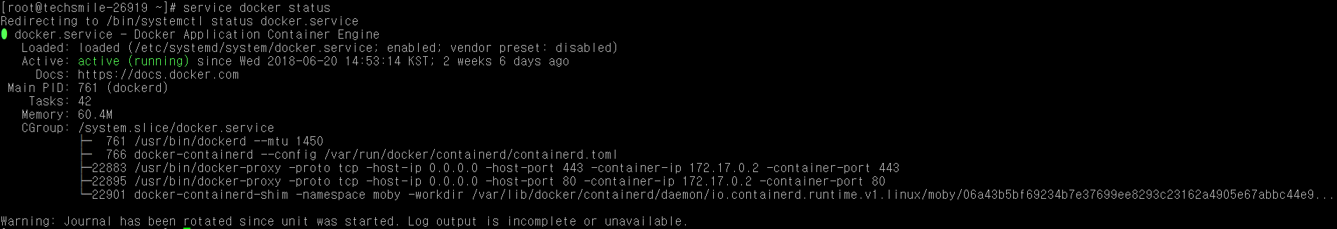 'Service' 혹은 'systemctl' 명령어를 통해 현재 중지된 도커 데몬을 실행하거나,