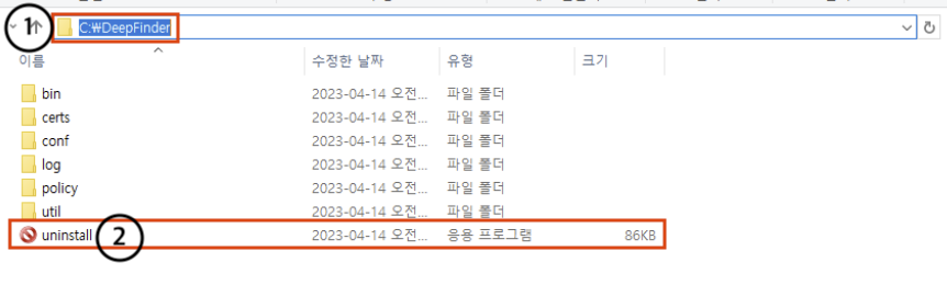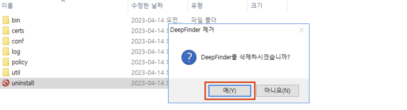 DeepFinder Agent 삭제 명령어 실행하게 되면 수 분 이내로 삭제가 됩니다